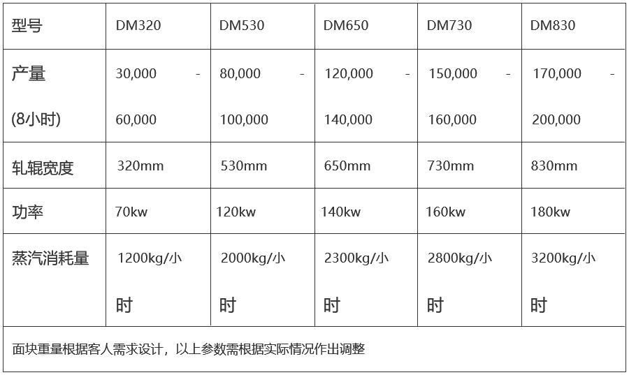 面粉風(fēng)送系統(tǒng)——鹽水系統(tǒng)——和面機(jī)——復(fù)合壓片機(jī)——連續(xù)壓片機(jī)——蒸面機(jī)——切斷(分排)落盒機(jī)——烘干機(jī)——分排輸送機(jī)——檢查輸送機(jī)——包裝